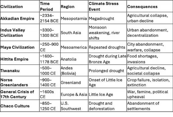 気候変動の影響を受けた文明:Civilisations affected by climate stress